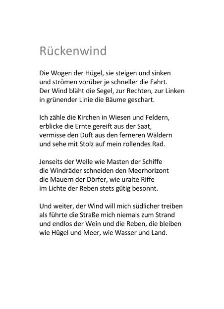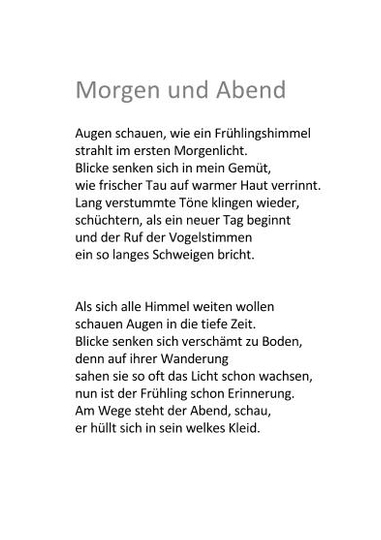endlich als leise Musik nach den Abenden fließt.